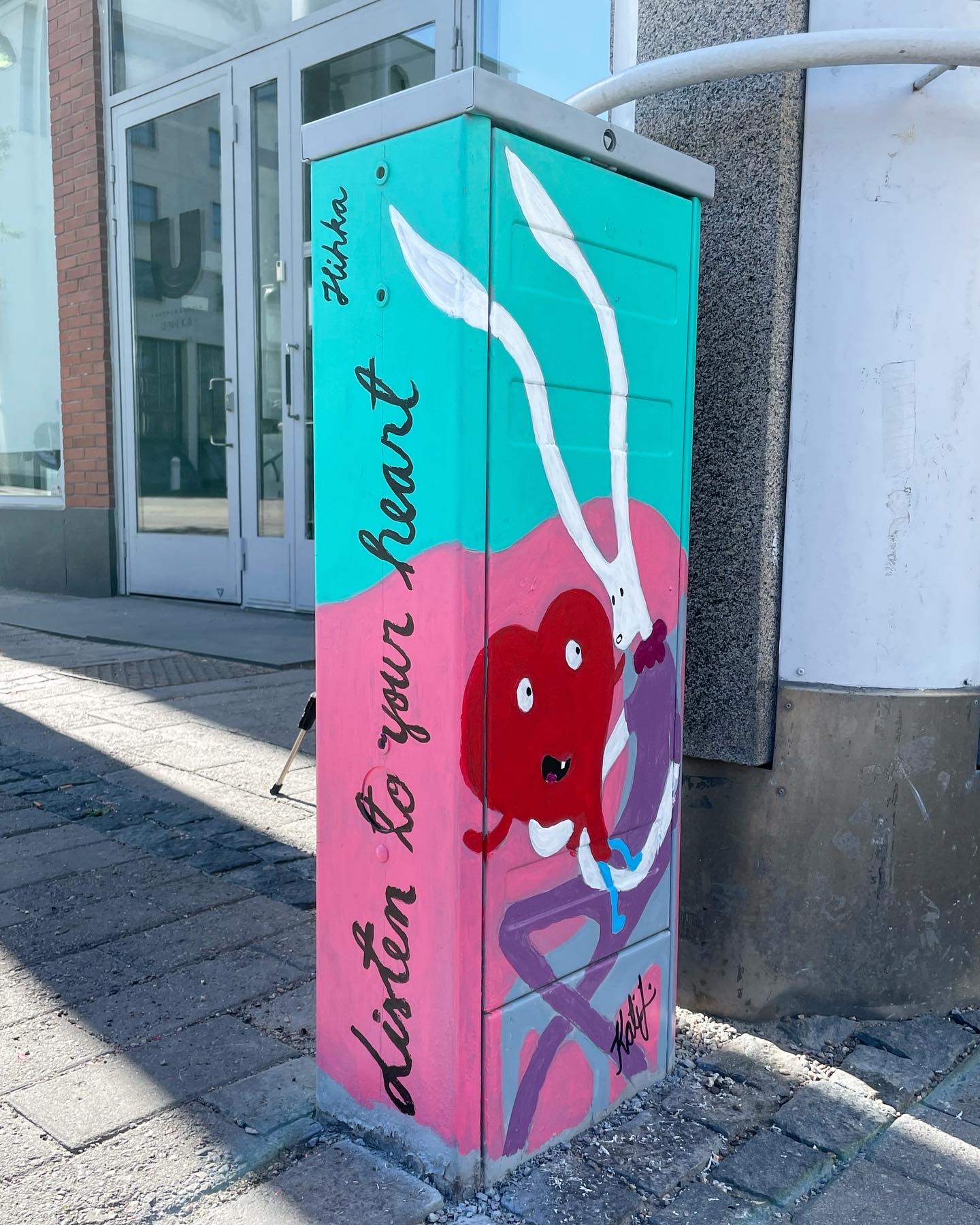 Kati likes to do community art so keep in touch if you want make a cheering Hihka mural project for example in a daycare with the kids or with the older people at nursing home!